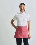 Short hospitality apron, 90cm self fabric ties, Three tablet friendly open pockets, Width: 60cm, Length: 33cm, Pocket: 20x17cm, *Denims: 70% cotton, 30% polyester twill, 265gsm