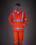 Conforms to EN ISO 20471 Class 3 & EN343 Class 3.3., Orange also conforms to RIS-3279-TOM, Made of soft touch breathable PU transfer coated outer farbic with cotton backing, Two 5cm width heat sealed reflectve tapes around the body and arms, one over each shoulder, Drop hood, rear ventlation and elasticated cuffs, Two lower pockets, Draw cord on the hem, Stitched and tape welded seams throughout